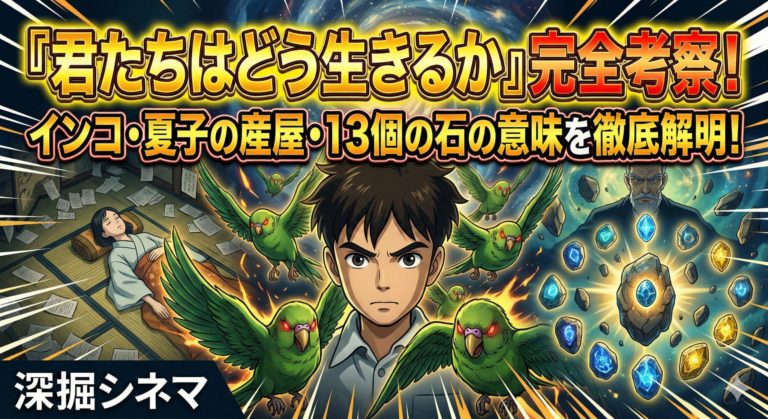 映画『君たちはどう生きるか』完全考察!インコ・アオサギ・大おじの正体から、13個の石や産屋の意味まで、宮崎駿監督が残した難解な暗号(メタファー)を徹底解説。スタジオジブリ崩壊の暗示と私たちへのメッセージとは?