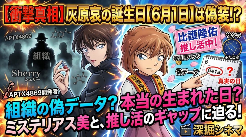 黒ずくめの組織の元メンバー・コードネーム『シェリー』であり、APTX4869の開発者である灰原哀(宮野志保)。彼女の誕生日は「6月1日」という設定が広く知られています。