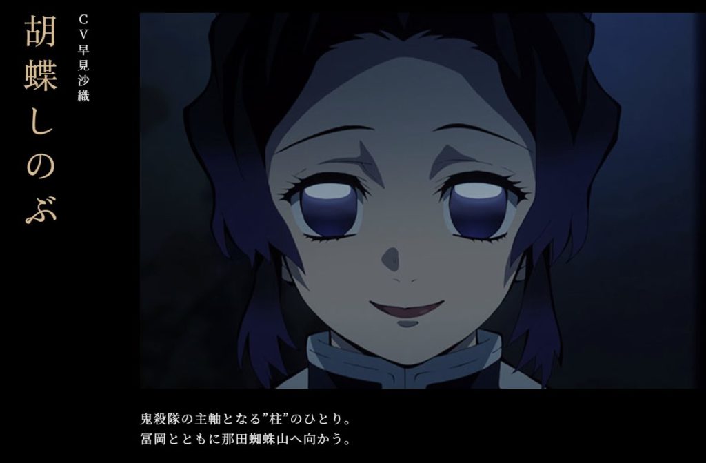 - 胡蝶 しのぶ:那田蜘蛛山で一行を救助し、蝶屋敷で治療と修行の場を提供しました。