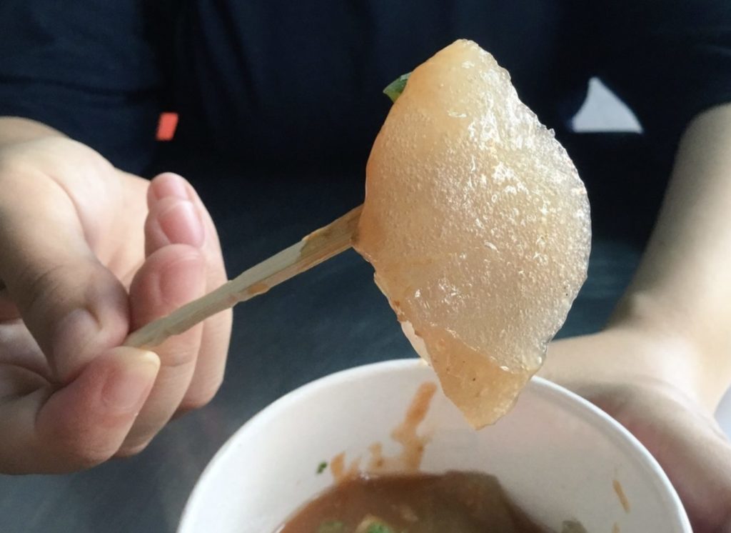 バーワンは、さつまいもや片栗粉などのでんぷんから作られた半透明の皮で肉餡を包んだ料理で、その丸みを帯びた形状とプルプルとした質感が、劇中の描写と酷似していました。