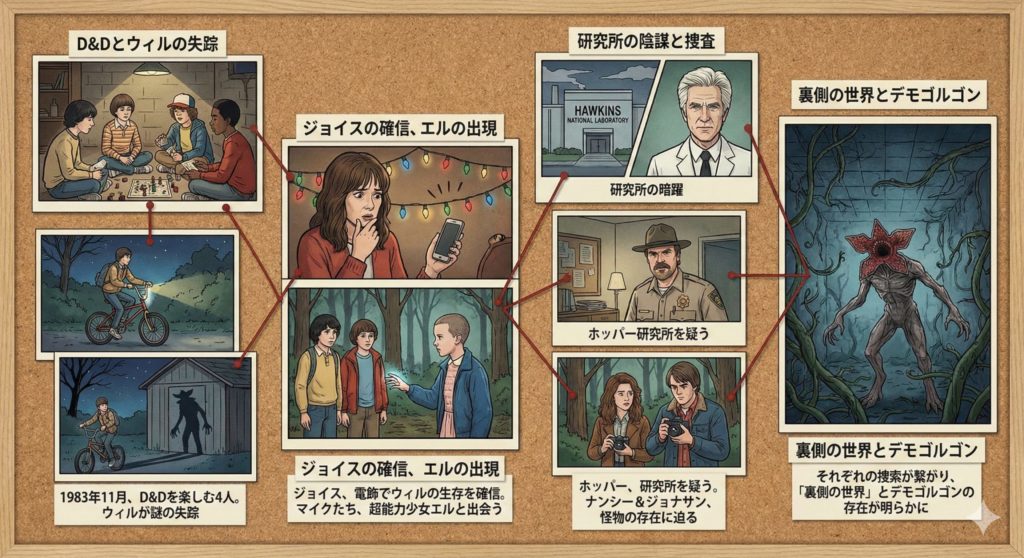 このシーズンのあらすじは、ウィルの失踪とイレブンの登場、そして「裏側の世界」の発見が中心となります。