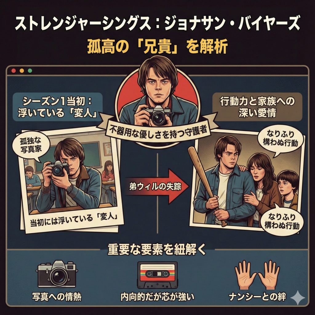 本記事では、ジョナサン・バイヤーズという人物の深層心理、ナンシーとの恋の行方、演じる俳優チャーリー・ヒートンの素顔、そして待望のシーズン5での役割について、徹底的に深掘りしていきます。
