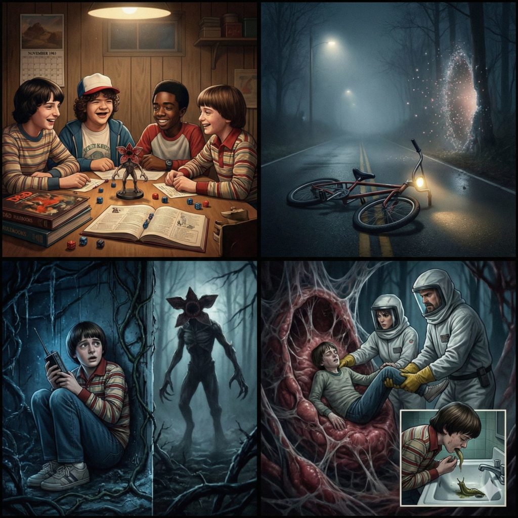 1983年11月6日、親友のマイク、ダスティン、ルーカスと「ダンジョンズ&ドラゴンズ(D&D)」で遊んだ帰り道、ウィルは突如として姿を消しました。