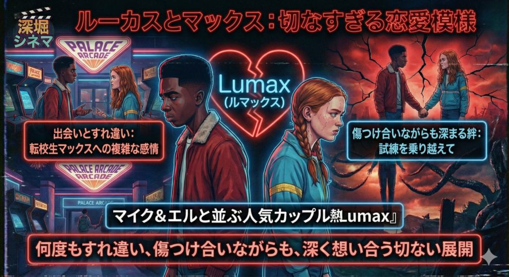 『ストレンジャー・シングス』において、マイクとエルのカップルと並んで人気が高いのが、ルーカスとマックス(マキシン・メイフィールド)のカップル、通称「Lumax(ルマックス)」です。