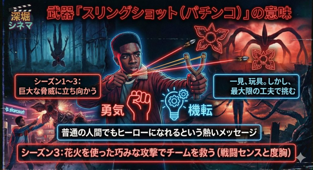- スリングショットの使い手:超能力がなくても知恵と勇気で戦う。