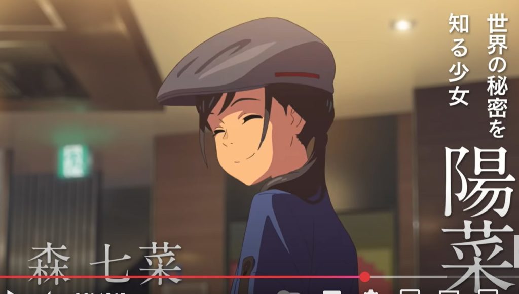 | 天野 陽菜 (Amano Hina) | 森 七菜 | 祈ることで天気を晴れにできる「100%の晴れ女」。 弟の凪と暮らす。 |